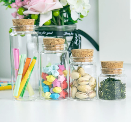 Bocaux en verre artisanat, bouchon en liège 150ml 47mm de diamètre, la pièce.
