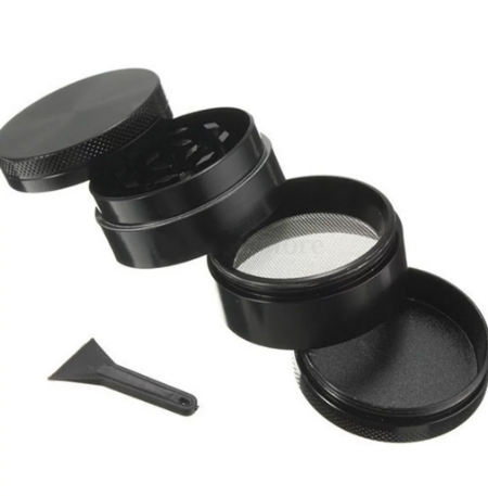 Broyeur à tabac de poche (Gringer). Ce broyeur est composé de quatre éléments et d’une mini spatule. Très pratique pour l’emporter partout.
