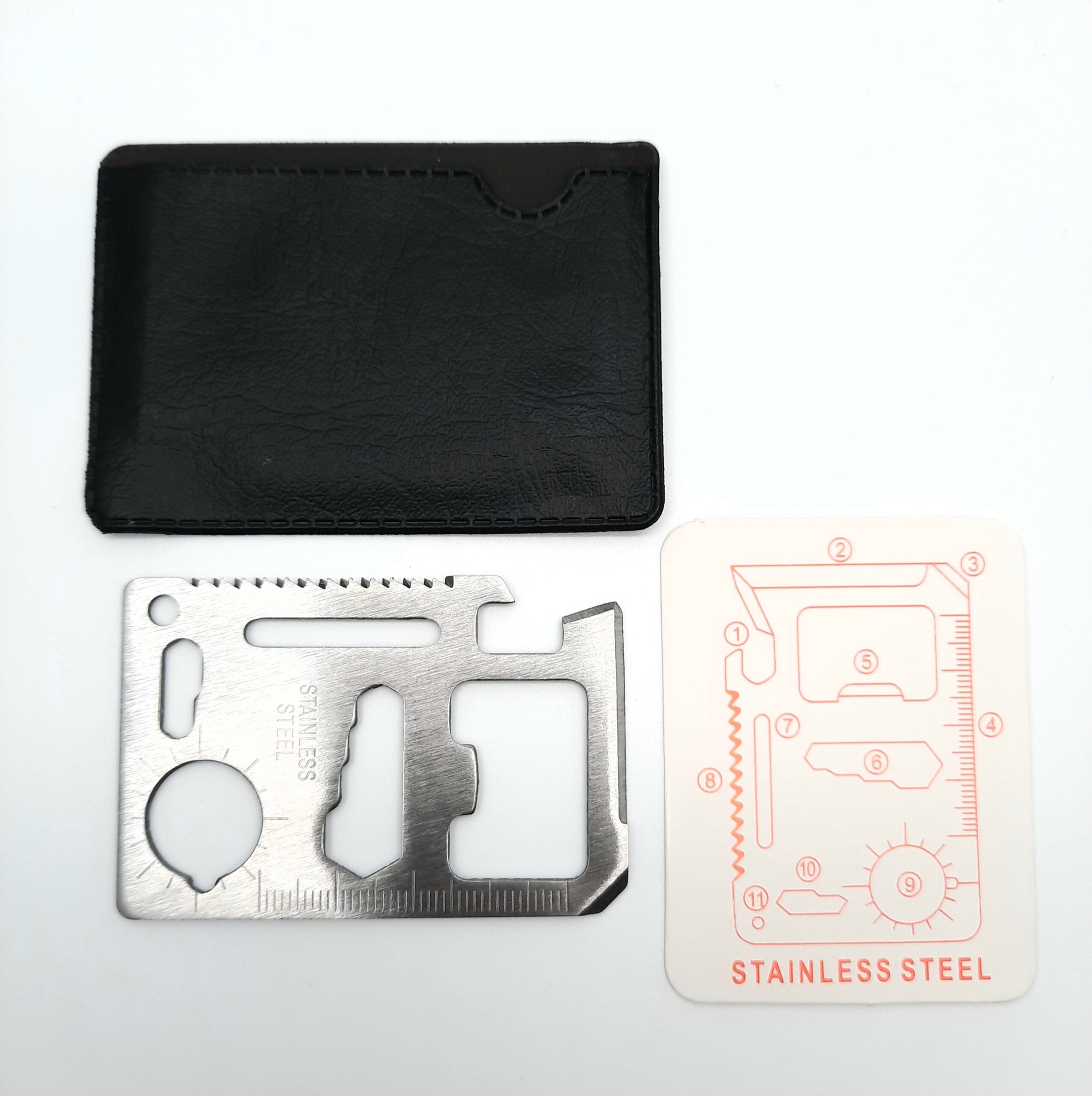 Carte en acier multi-usages. Toujours à portée de main. Usage multiple, serrage, décapsule, coupe, vis etc..