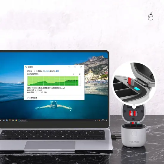 Avec ce triple chargeur, vous pouvez charger trois batteries GoPro Hero 12 / 11 / 10 / 9 Black en même temps et en peu de temps. Le design compact et le poids léger permettent d’emporter le boîtier triple batterie partout avec vous. Grâce au port USB C , vos batteries GoPro 12 / 11 / 10 / 9 Black se rechargent en un rien de temps. Une LED d’état intégrée indique lorsque les batteries sont complètement chargées.