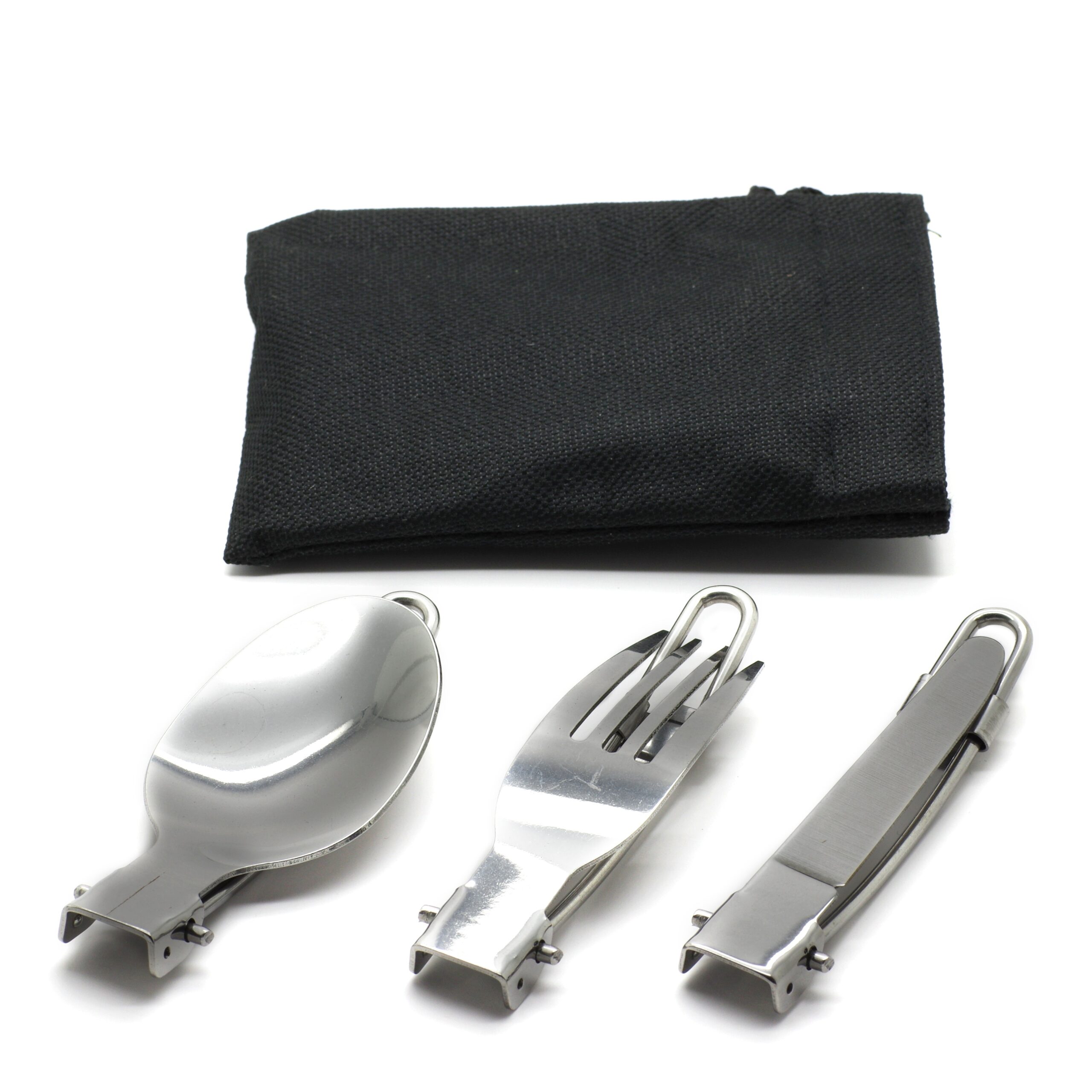 Ce set de couverts pliables en acier inoxydable est idéal pour le camping car il ne prendra que très peu de place dans votre sac à dos. La pochette noire avec les couverts pliés est si petite qu’elle peut facilement se glisser dans une simple poche (seulement 11.5 x 8 cm et moins de 1 cm d’épaisseur).