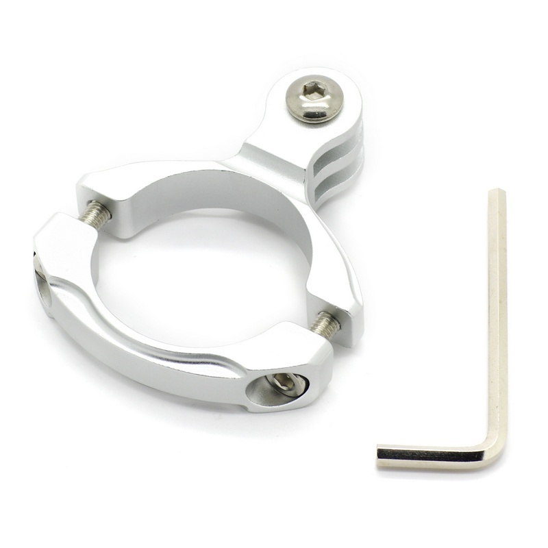 Fixation pour GoPro en aluminium avec clé incluse, disponible en 3 couleurs.