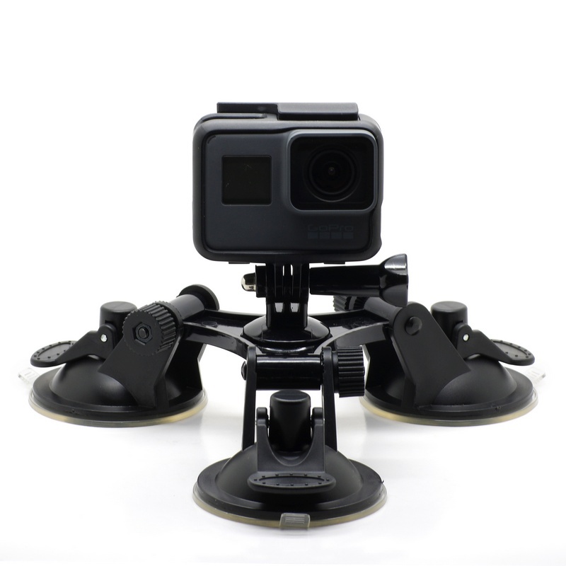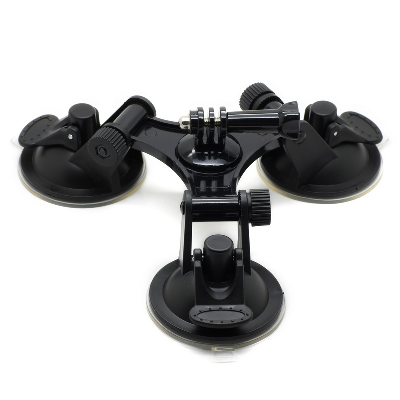 Fixation articulée pour GoPro à 3 ventouses (de 68 mm de diamètre chacune) avec vis incluse.
