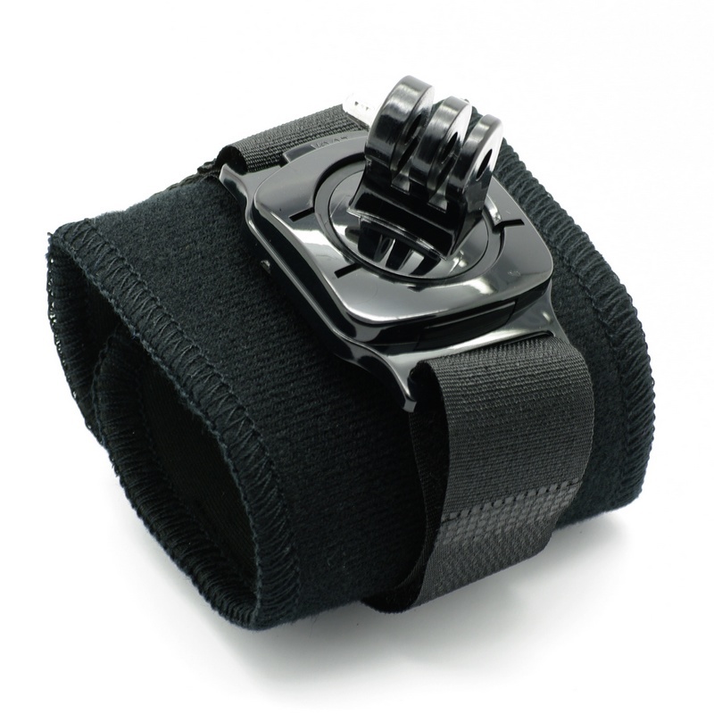Fixation poignet à sangle confortable pour fixer votre GoPro et orienter la caméra à 360° (avec bouton à pousser pour bloquer la rotation).