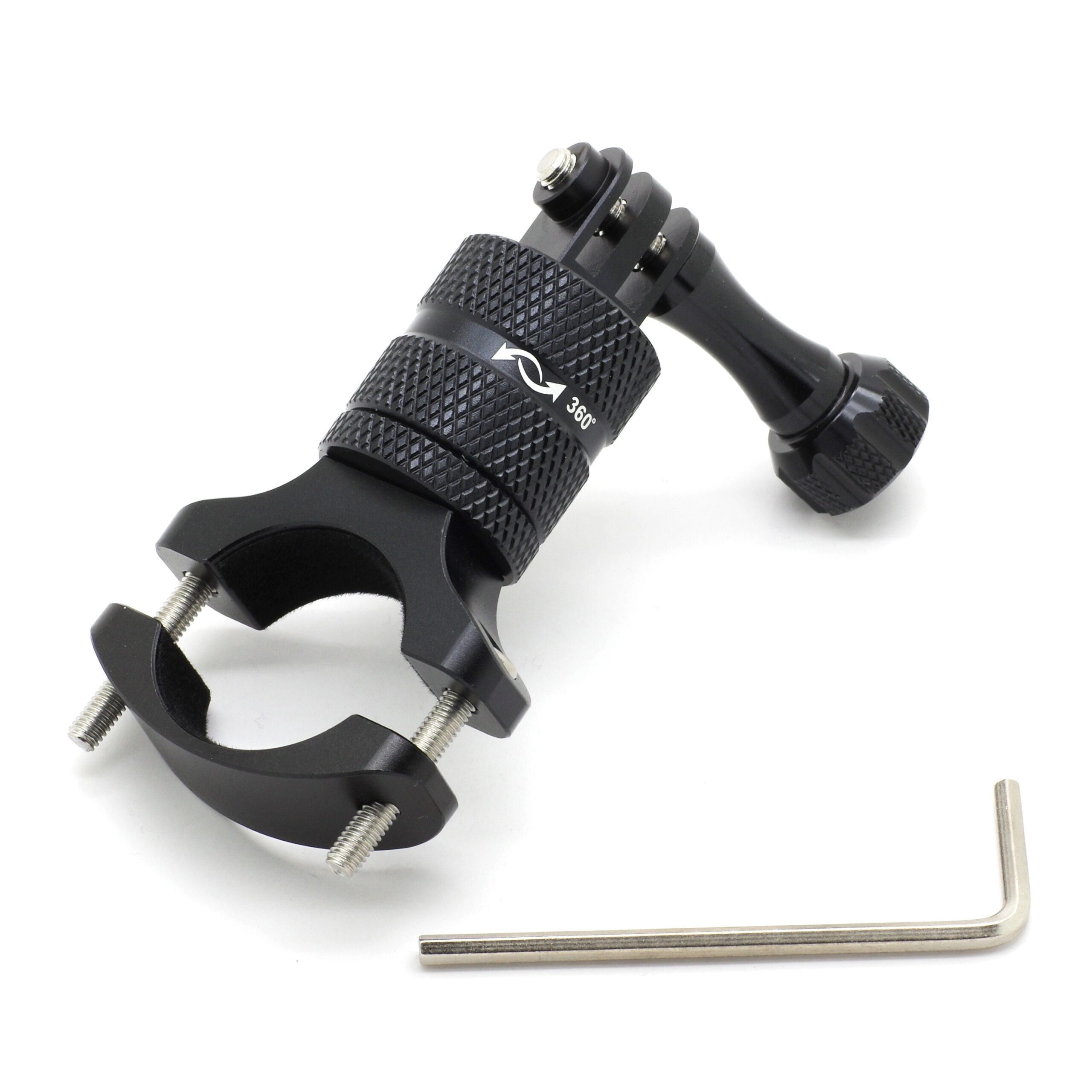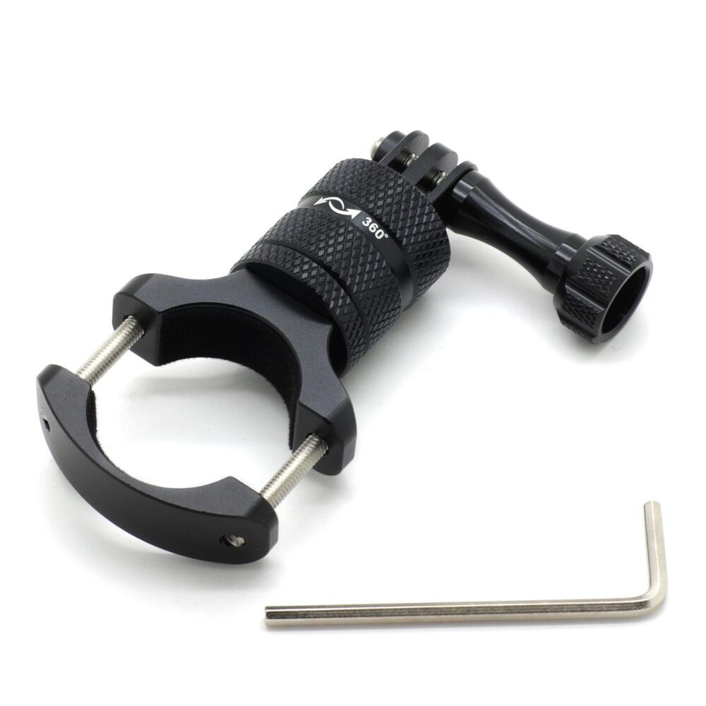 Cette fixation 360° pour GoPro en aluminium permet de changer facilement l’orientation de la caméra (même en déplacement), idéale notamment pour une utilisation sur un vélo.