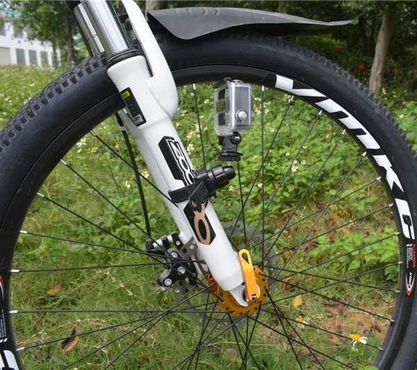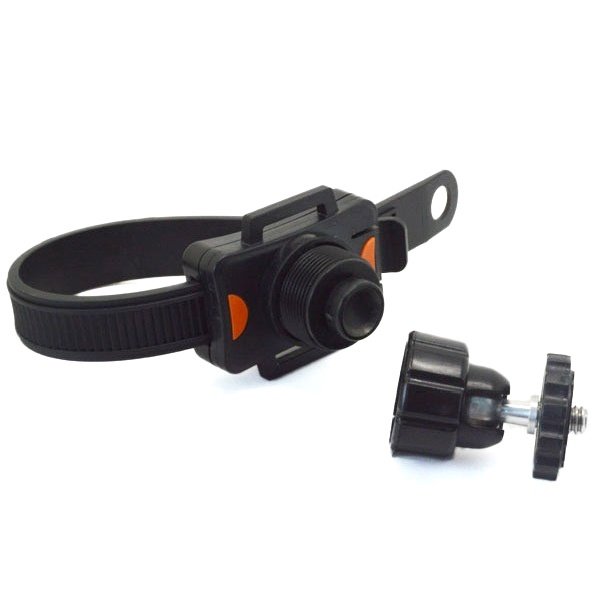 Fixation réglable et orientable à 360° pour vélo, moto et casque (avec adaptateur pour GoPro inclus).