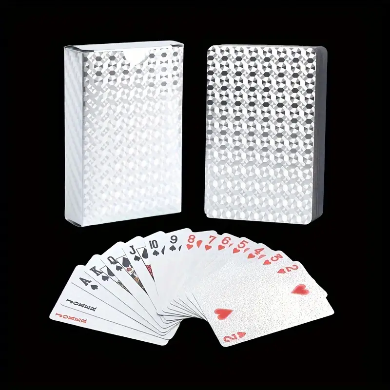 Plastique Durable Et Imperméable À L’eau Ce magnifique jeu de 52 cartes (+ 2 jokers) argenté est entièrement plastifié (ce qui lui confère une bien meilleure durée de vie que les traditionnelles cartes en papier cartonné).