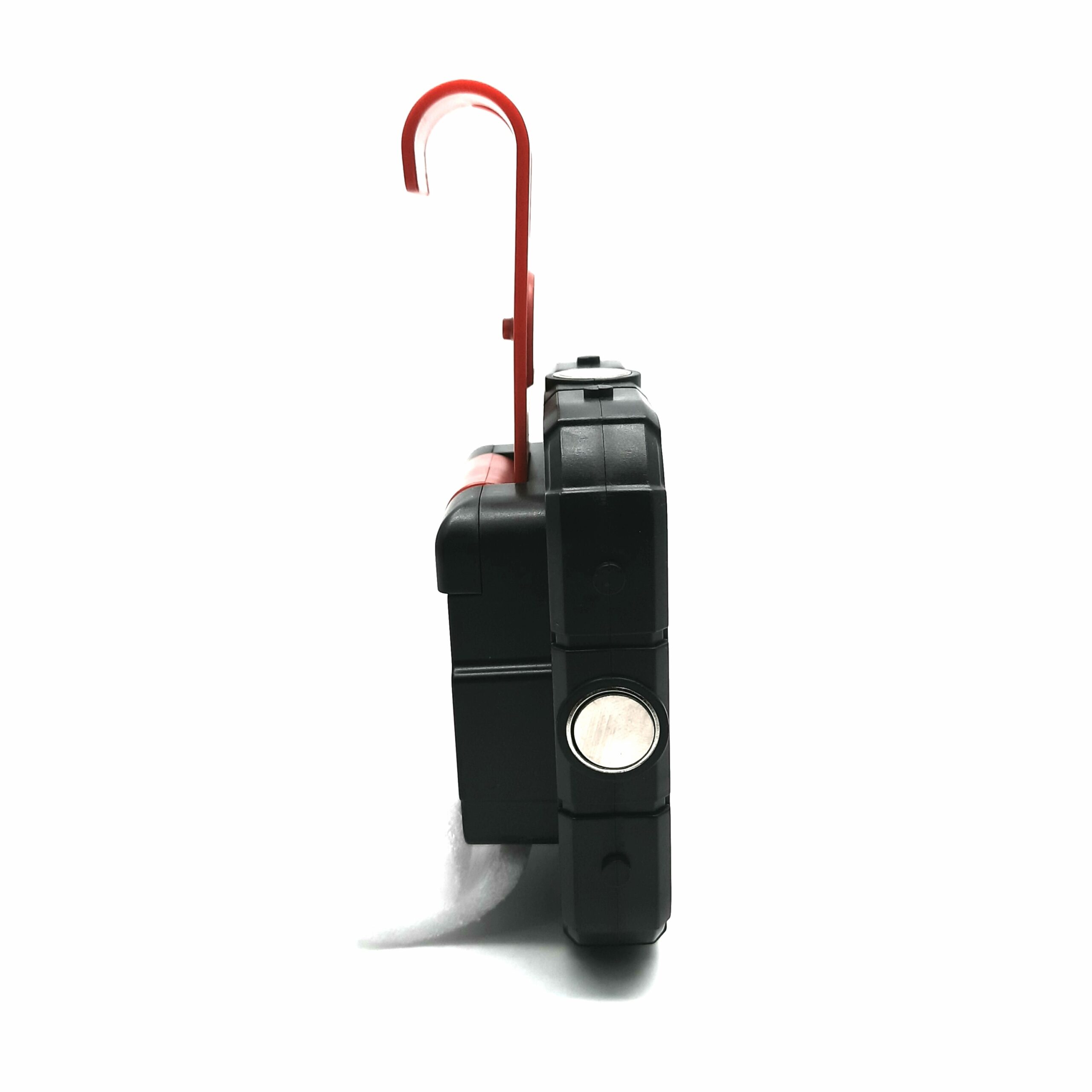 Lampe LED multifonctions. Elle se fixe un peu partout. Aimantée et bien pratique avec son crochet rabattable.