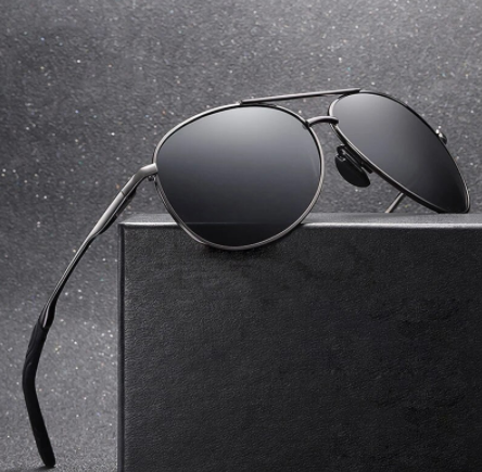 Lunettes de soleil polarisées UV400 pour hommes. Cadre en alliage verres en polycarbonate, grandeur voir photo. Inclus étui à lunettes.