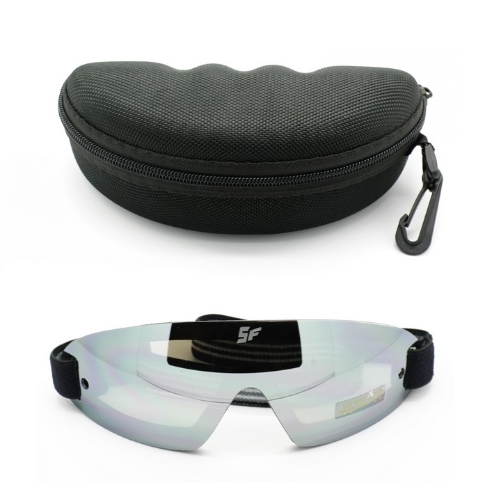 Lunettes de protection teintées avec effet miroir, idéales pour la pratique du parachutisme ou un autre sport.