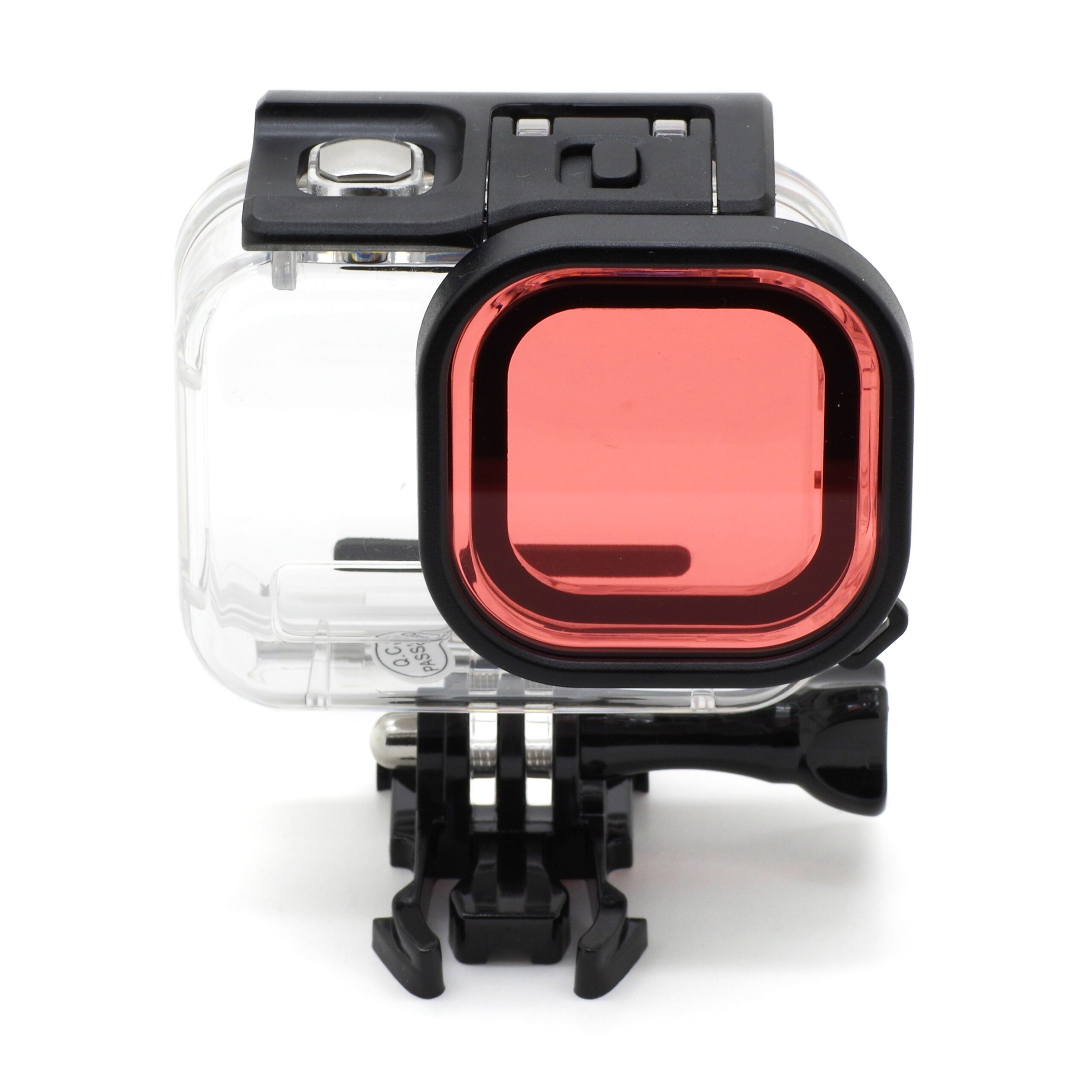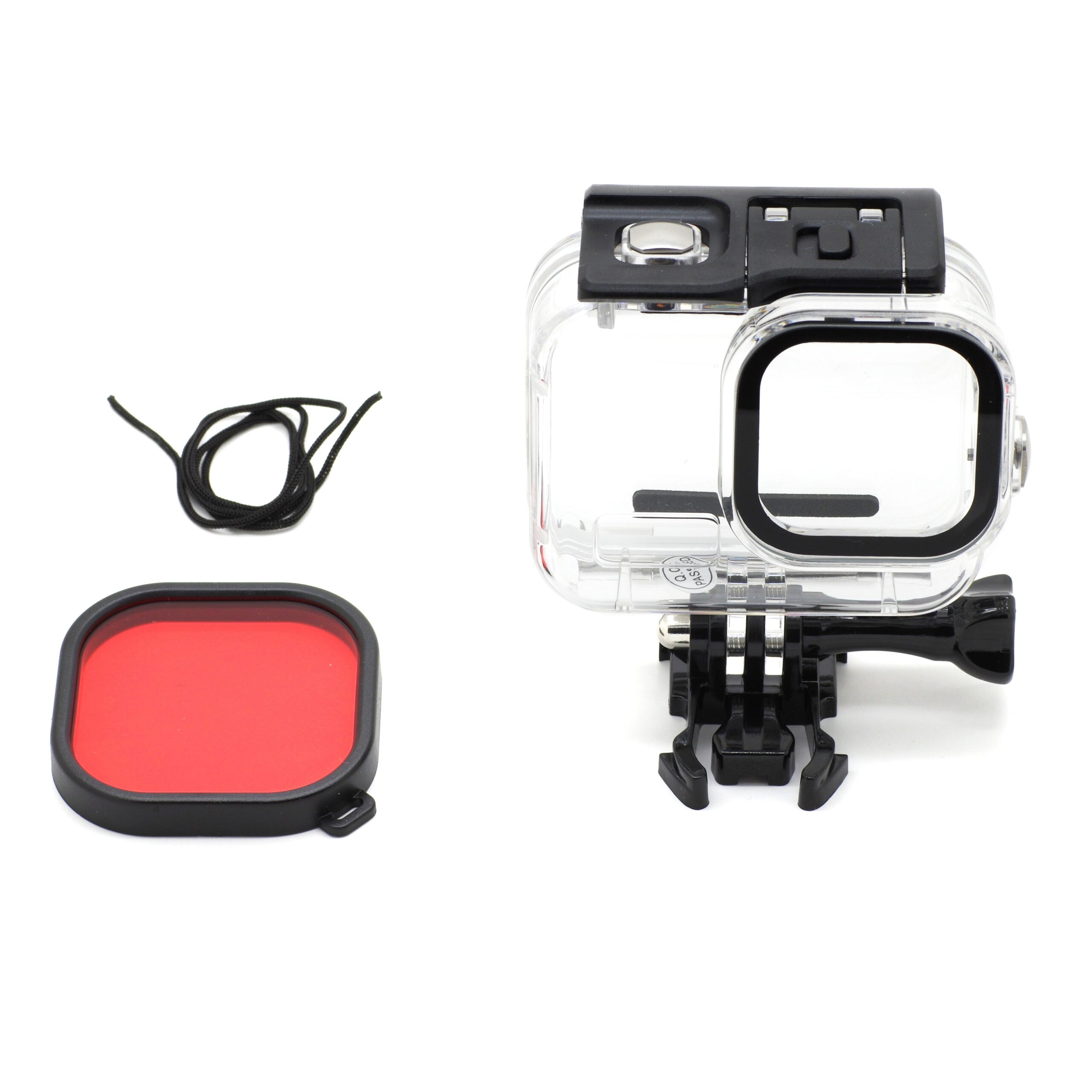 Boîtier de protection transparent waterproof 45m pour GoPro HERO8 + filtre rouge compatible.