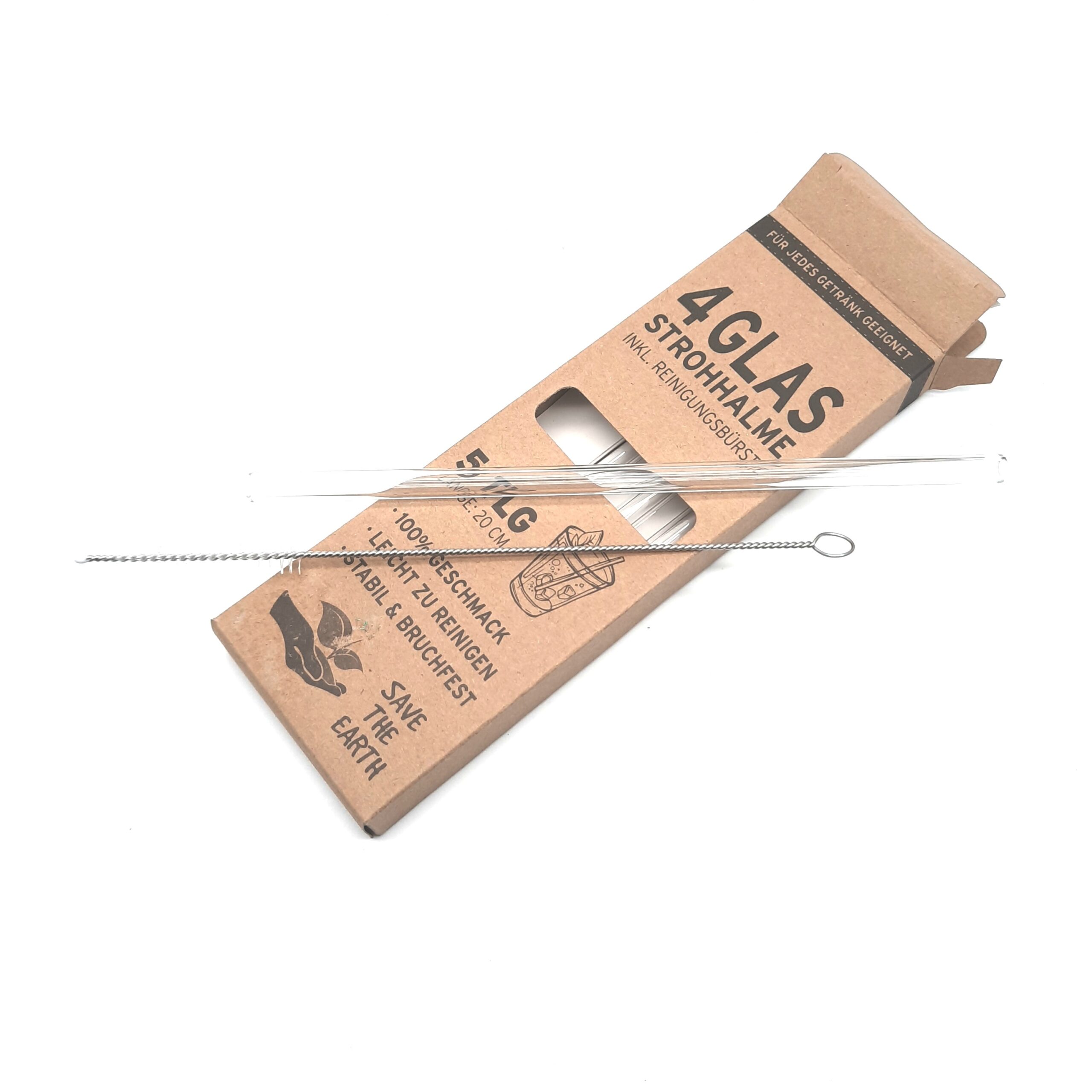 Set 4 Pailles en verre. Superbes pailles en verre en set de 4 pièces avec brosse de nettoyage. Une solution alternative écologique aux pailles plastiques.