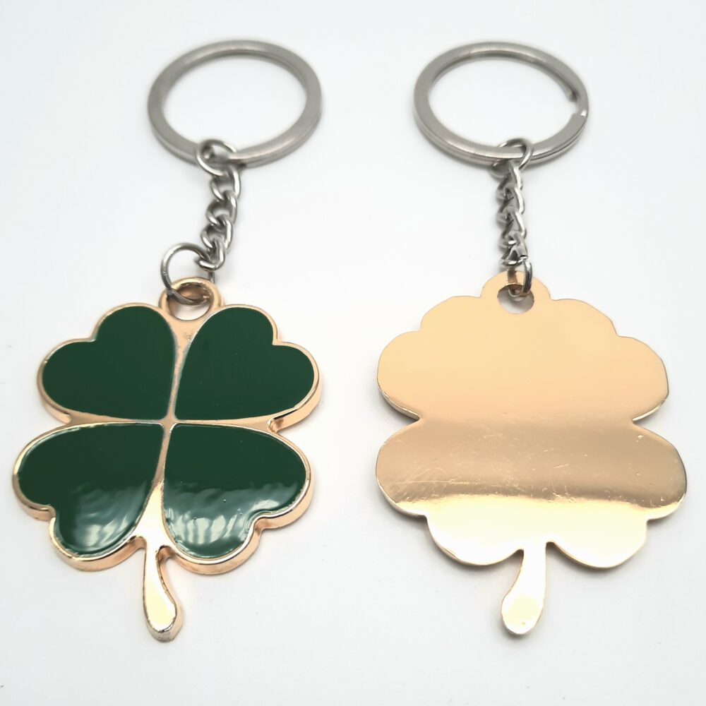 Porte-clés porte-bonheur plaqué en or 24k « trèfle à 4 coeurs ».
