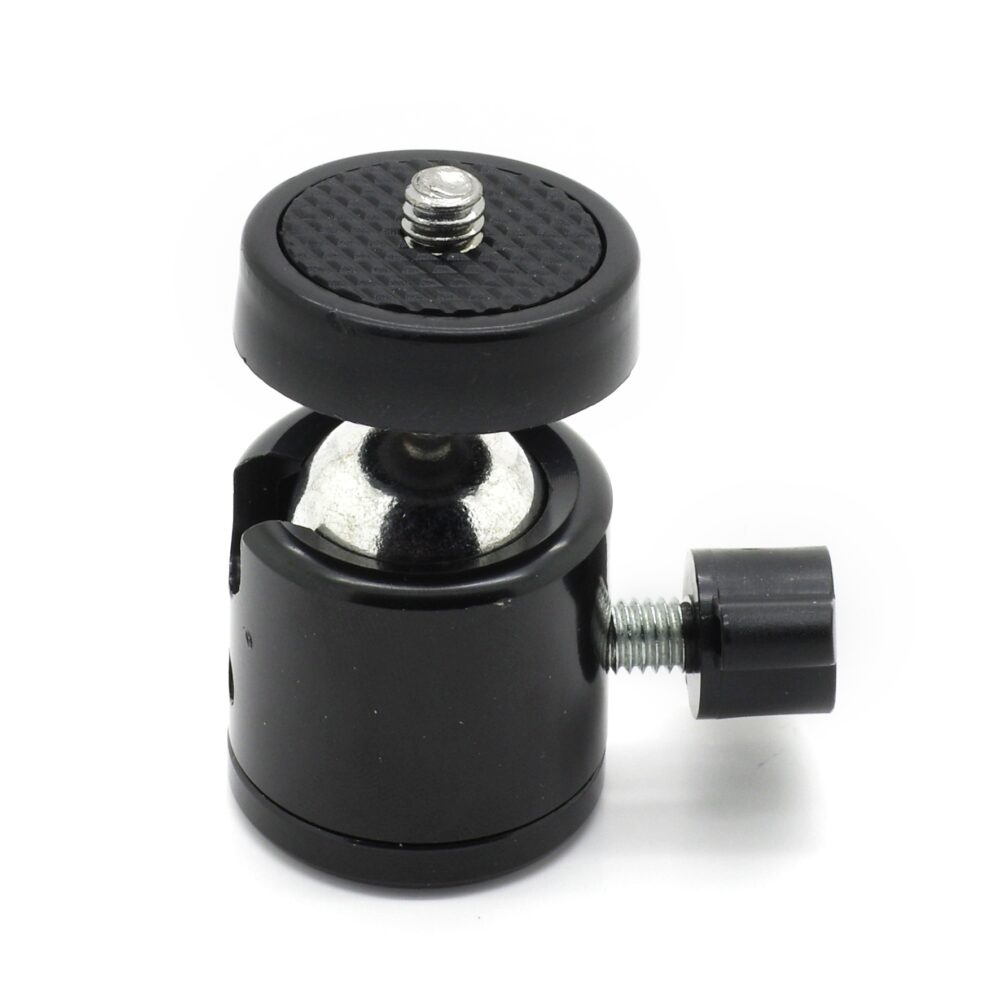 Cette rotule pratique peut être fixée sur n’importe quel trépied, perche, ventouse, etc, muni de la vis standard 1/4″ (il s’agit de la même vis que celle utile pour fixer l’adaptateur pour GoPro).