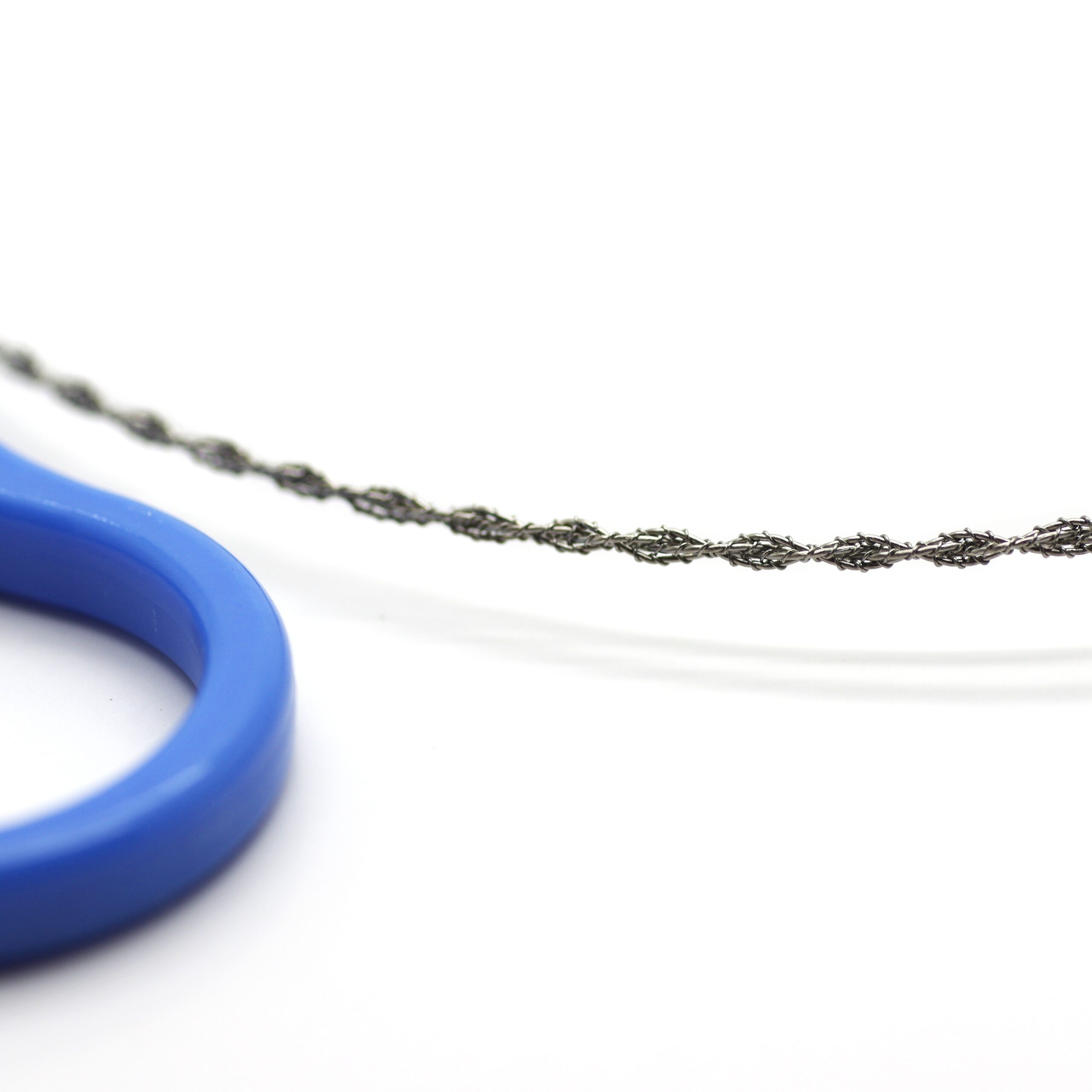 - Scie fil en acier avec poignées en plastique bleu