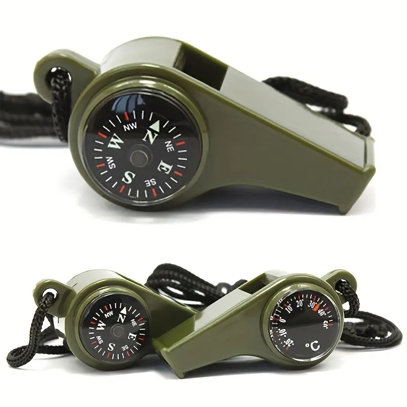 – Certains modèles de sifflet boussole peuvent également intégrer d’autres fonctionnalités utiles, comme un thermomètre, un miroir de signalisation, une loupe, ou encore un compartiment de stockage pour des allumettes ou d’autres petits articles de survie.