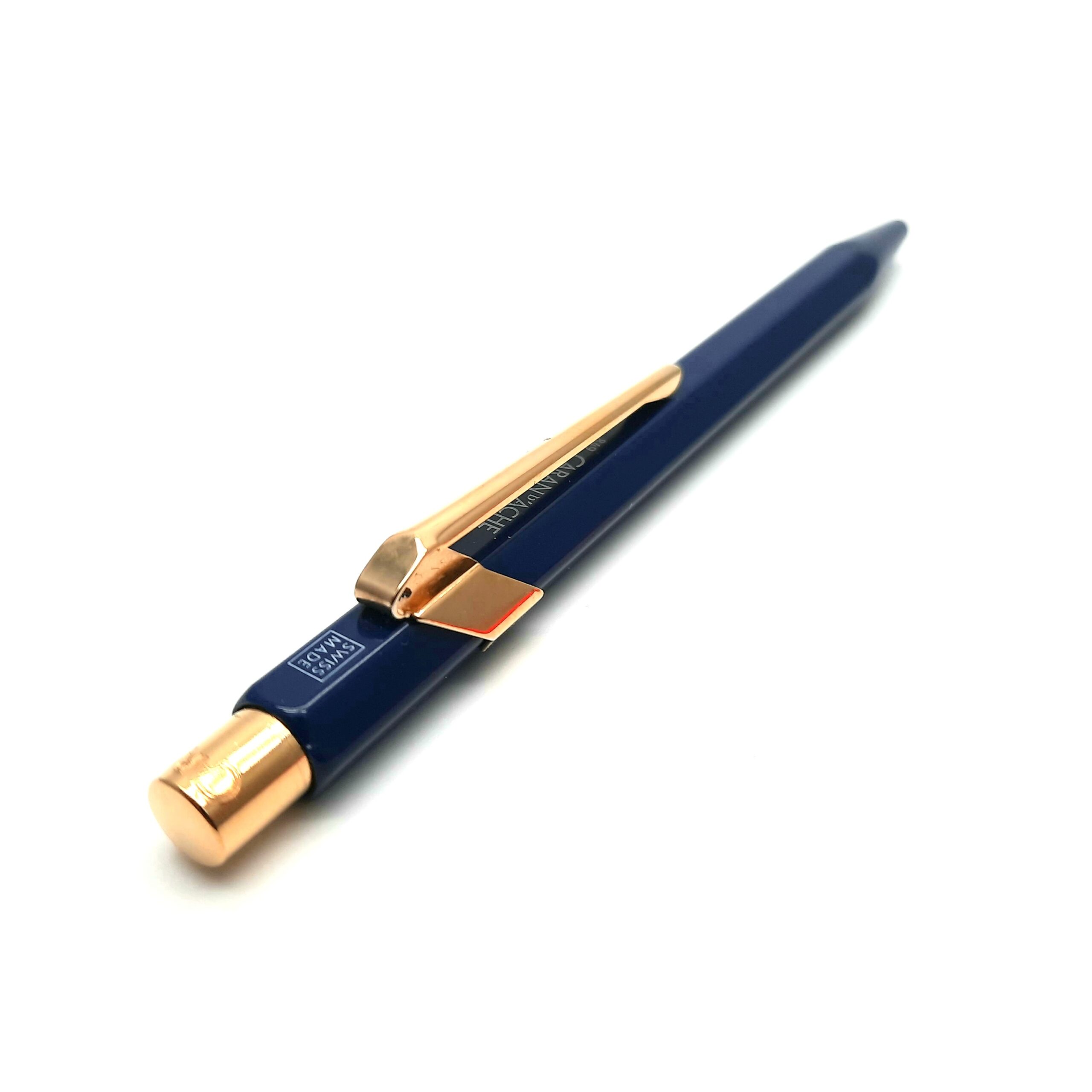 Magnifique stylo Caran d’Ache Swiss made avec clips et bouton plaqué en or 24k.