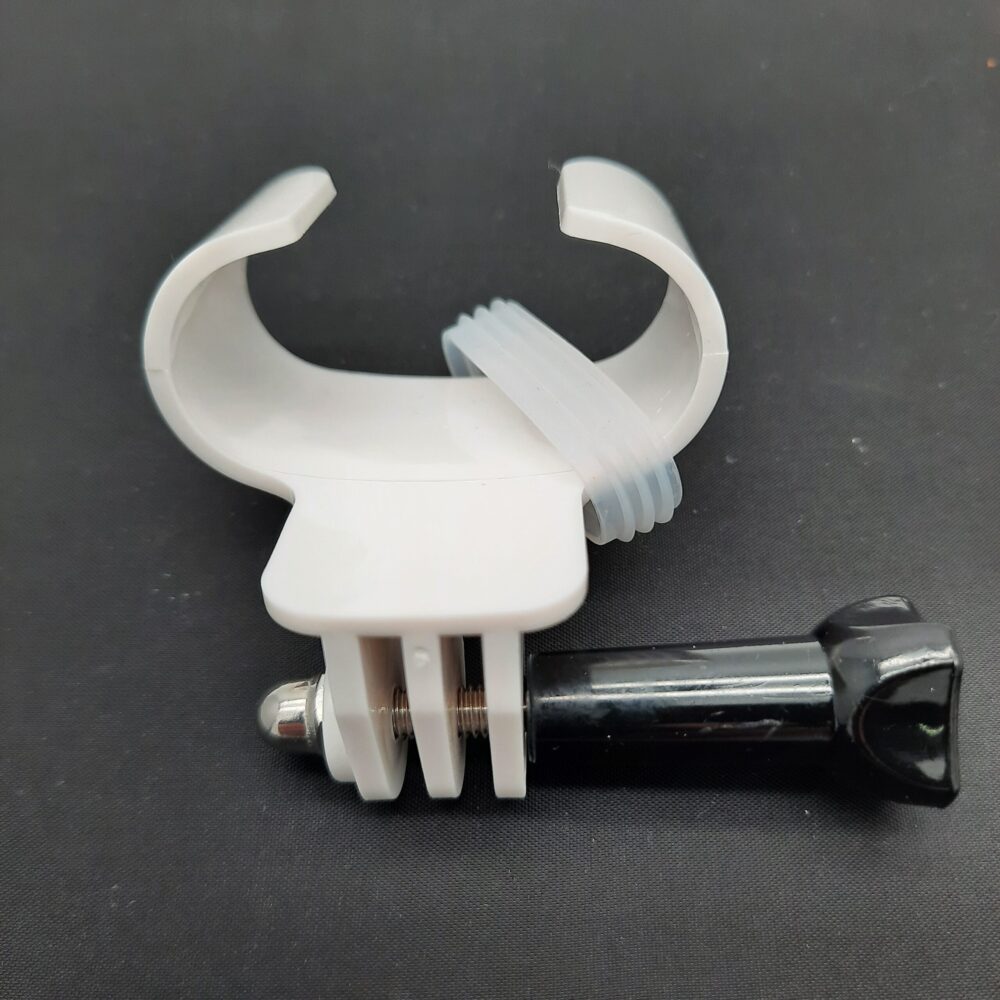 Support caméra pour masque de plongée intégral. Ce support se fixe sur le bas du tuba. Pour fixer votre caméra d’action sur votre masque.
