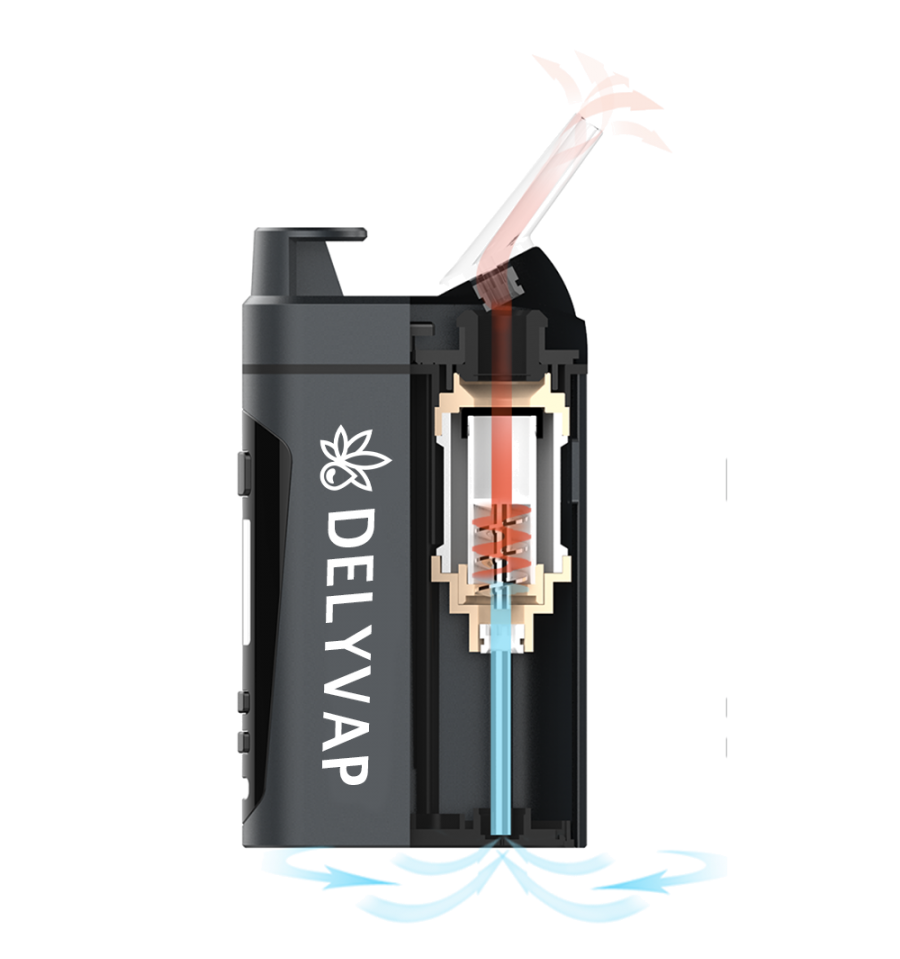 Voici les Caractéristiques principales de DELYVAP Double technologie de convection (chauffage à air) Le système à double convection avec chambre en céramique à conduction et technologie de chauffage de l’air assure une vapeur savoureuse et de qualité.